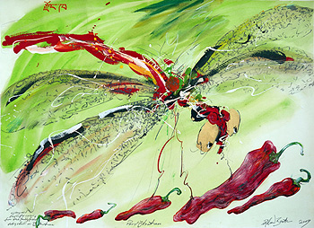 Die Werke, die Roland Bentz zu diesem Thema in dieser Ausstellung zeigt, sind alle unmittelbar in Bhutan entstanden.